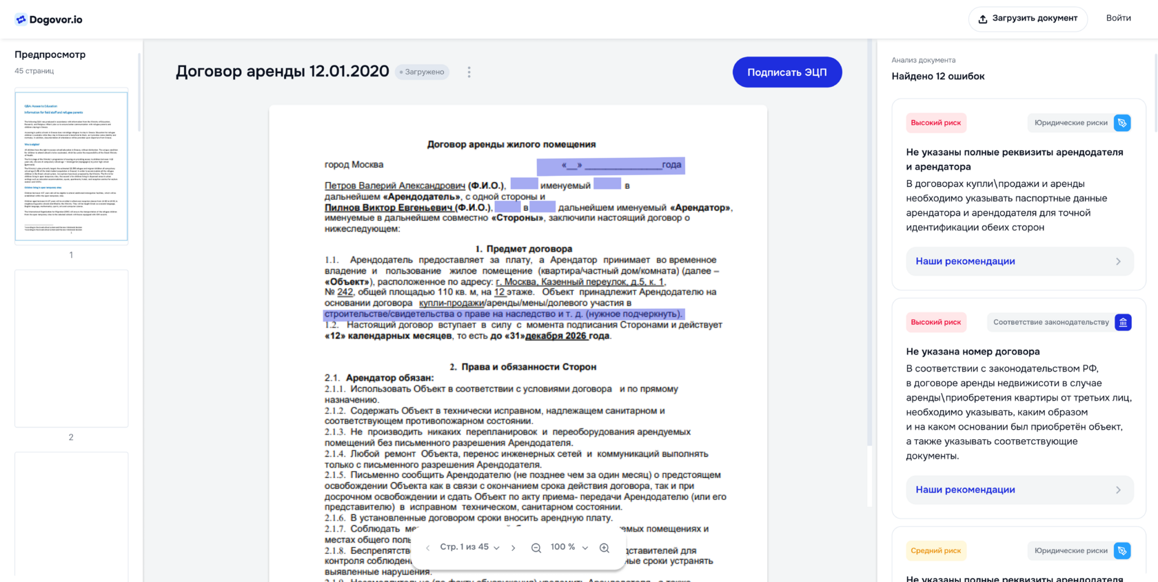 Искусственный интеллект найдет все пункты договора, которые могут быть для вас невыгодны